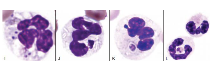 I- Francisella philomiragia enfeksiyonu ve DIC hastalığı bulunan köpekte toksik ve dejeneratif nötrofil. J- Mycobacterium enfeksiyonu. K- Histoplasma capsulatum enfeksiyonlu köpekte nötrofil. L- Leishmania infantum amastigot içeren nötrofil