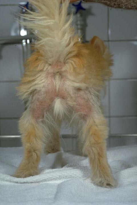 Ekstremitelerin distalinde ve yüz bölgesinde kıllar gelişmez. Yavru kılları hayvan üzerinde kalır. Sekonder kıl gelişimi gerçekleşmez. Ekstremitelerin arka tarafında, boyunda bilateral simetrik alopesi gelişir. Deri ince, kepekli ve hiperpigmentedir. Genital bölge gonad disfonksiyonu nedeniyle atrofik veya hipertrofiktir.